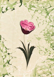 Nach der Erstellung der Marmorierung können nun noch Objekte wie Blumen gemalt werden. Hierzu werden die Farben in Form einzelner Tropfen auf das Wasser aufgebracht. Durch das Aufeinanderlegen verschiedener Farben und das Malen mit den Nadeln können die die kunstvollsten Formen erstellt werden Auch hier kann wiederum Galle verwendet werden. Hier nun, um die anderen Farben zu verdrängen.