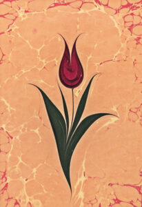 Der Name „Ebru“Um das Jahr 1000 bekam das marmorierte Papier in Persien den Namen „ebru“, was Wolke oder wolkig bedeutet. Das Wort „ebru“ wiederum leitet sich vom persischen „abru“ ab, das bedeutet Wasseroberfläche. Heutzutage ist diese Kunst im Deutschen als „marmoriertes Papier“ bzw. „türkisches Papier“ bekannt. Der Name „türkisches Papier“ rührt daher, dass die Ebru-Malerei im 15. Jahrhundert von türkischen Künstlern übernommen und die spezifischen Techniken auch von den türkischen Künstlern verfeinert wurden. Obwohl „Ebru“ übersetzt Wolke bedeutet, zeigen viele Kunstwerke keineswegs Wolken. Hauptsächlich werden oft wunderschöne florale Motive, Blütenformen, ganze Landschaften und sogar verschiedene Gesichtszüge bzw. Gesichtsausdrücke dargestellt. Ebru ist auch immer die Bereitschaft, die Farbe bis zu einem gewissen Grad ihren eigenen Weg finden zu lassen, der Phantasie zu folgen und daraus dann ein Bild zu schaffen.