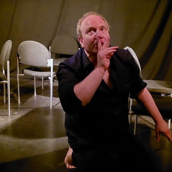 Vor genau 100 Jahren schrieb Franz Kafka seine Erzählung Der Bau. Er beschreibt darin die verzweifelten, zunehmend paranoiden Versuche eines Tieres, seinen selbst errichteten Bau vor möglichen Gefahren zu sichern. Kafkas Erzählfragment das posthum von Max Brod 1928 veröffentlicht wurde, ist physisch und psychisch eine Verelendungsmetapher heutiger Zeit. Die ständige Vorstellung, was alles passieren könnte, führt ins Reich der Phobien, die sich im grellen Licht zwischen Schattenprojektionen und Buddeln in der Erde offerieren. Jeder Schritt wird sofort hinterfragt. Gewissheiten müssen überdacht werden, Zweifel wachsen: Ist die Anlage wirklich so sicher wie gedacht? Wie kann dies überprüft werden? Kann man den eigenen Rückzugsort von außen beobachten, ohne gerade dadurch die Aufmerksamkeit potenzieller Feinde darauf zu lenken? In seiner Phantasie verwandeln sich Geräusche in ein wuchtiges Rüsseltier, das durch Ein- und Ausatmen neue Ängste schürt und die Paranoia befördert. Der Text seziert lakonisch ein Spannungsfeld zwischen Sicherheitsbedürfnis und Paranoia.
